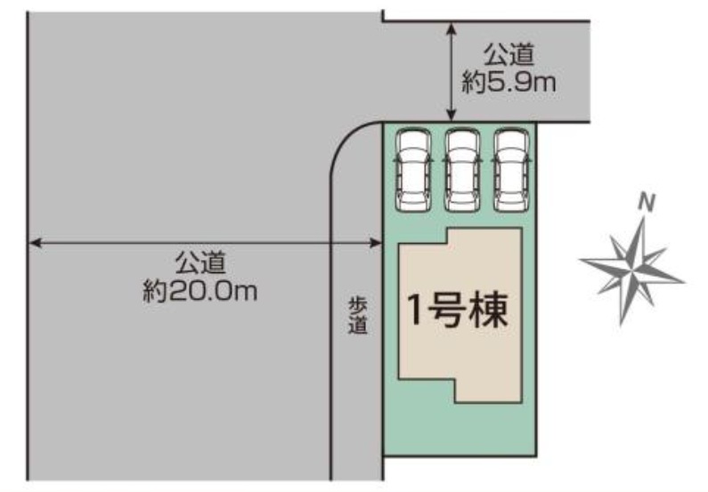 北側道路・東京電力・公営水道・公共下水・都市ガス・令和7年12月中旬完成予定