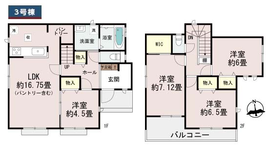 北側道路・ウォークインクローゼット3箇所・対面キッチン・長期優良認定住宅