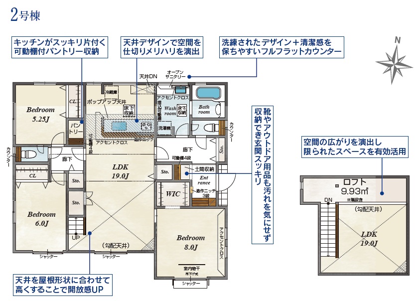 空間の広がりを演出し限られたスペースを有効活用できるロフト付きのお家です♪